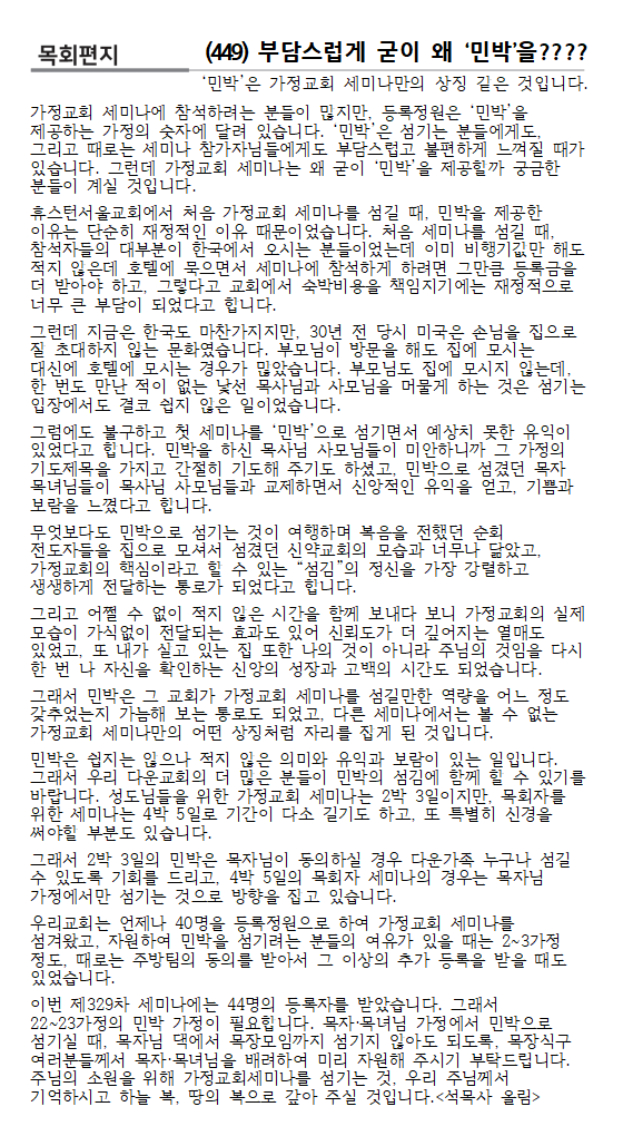3. 제329차 목회자를 위한 가정교회 세미나 (D-17)