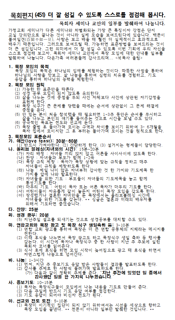 2. 제329차 목회자를 위한 가정교회 세미나(D-3) - 이번주