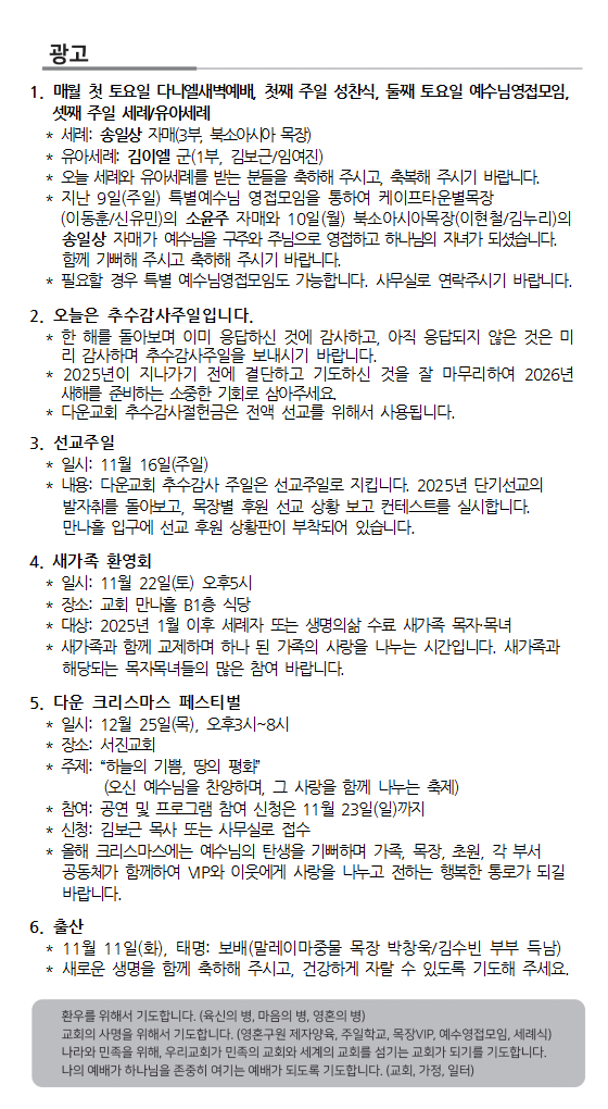 2025. 11. 16. 주보와 교회소식