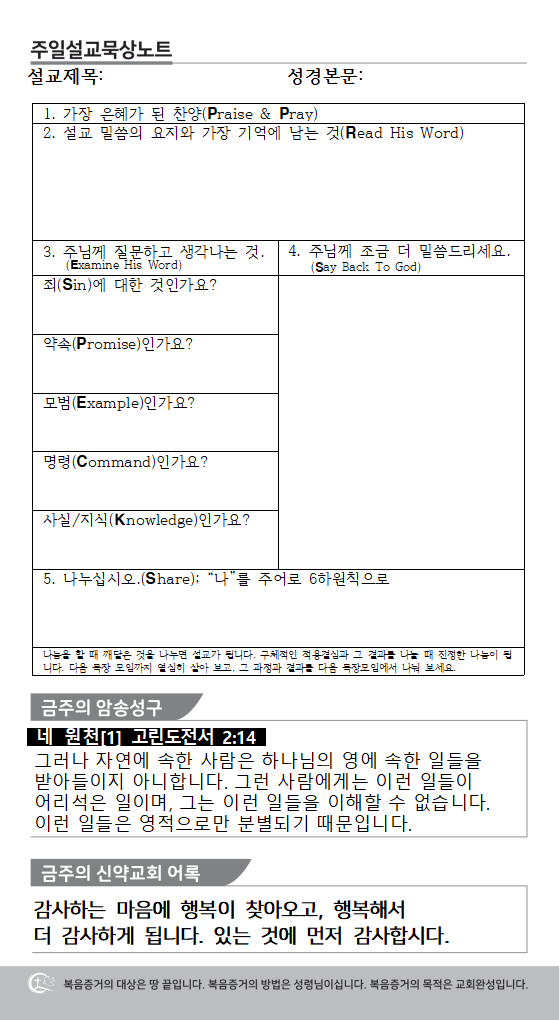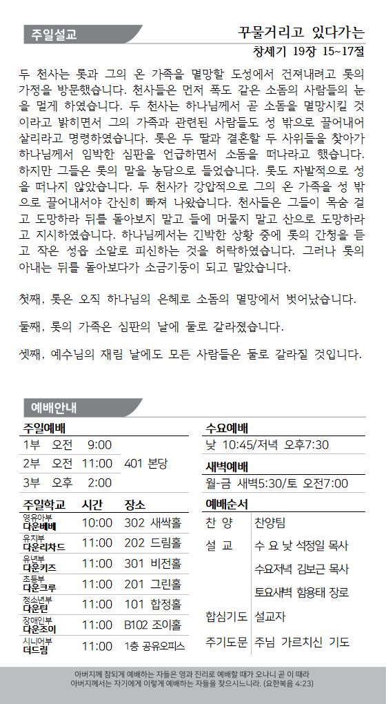 * 필요할 경우 특별 예수님영접모임도 가능합니다. 사무실로 연락주시기 바랍니다.
