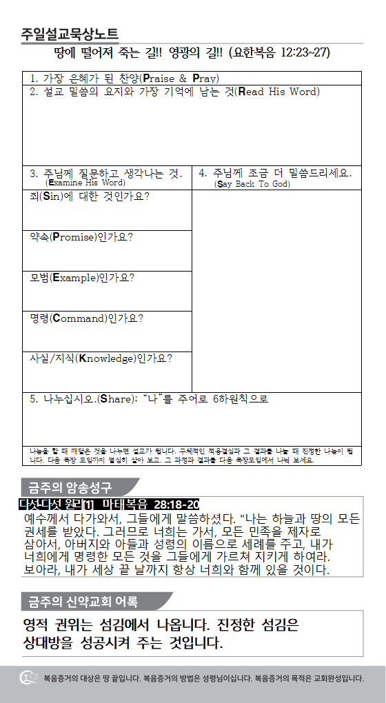 * 방법: 1)매일 마태복음 24~25장을 한 번씩 읽기