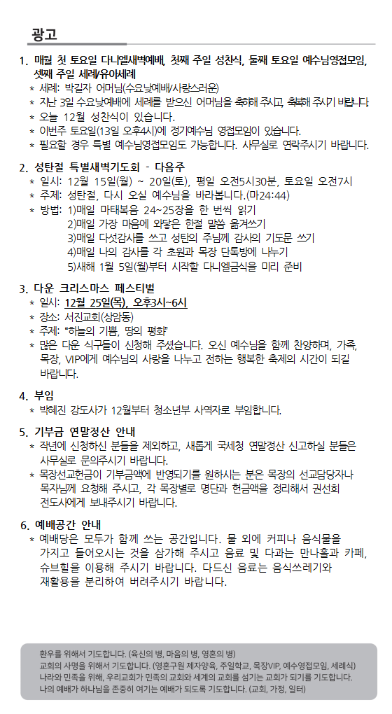 * 많은 다운 식구들이 신청해 주셨습니다. 오신 예수님을 함께 찬양하며, 가족, 목장, VIP에게 예수님의 사랑을 나누고 전하는 행복한 축제의 시간이 되길 바랍니다.