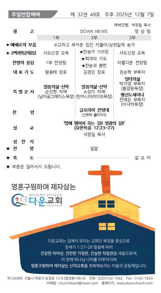 * 필요할 경우 특별 예수님영접모임도 가능합니다. 사무실로 연락주시기 바랍니다.