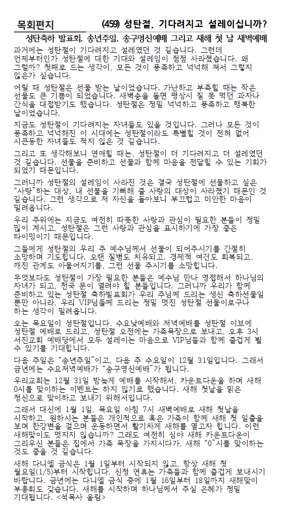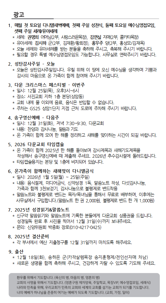 2025. 12. 21. 주보와 교회소식
