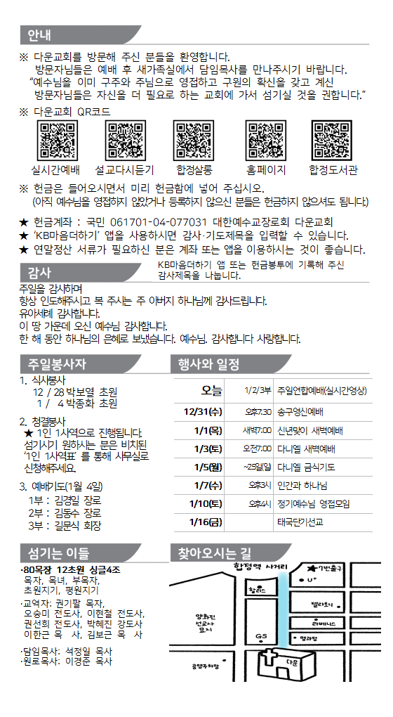 * 일시: 12월 31일(수), 저녁 7:30~9:30, 다운교회