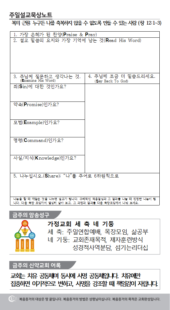 3)매일 말씀노트를 작성, 다섯감사 단톡방 나누기(목장/초원)