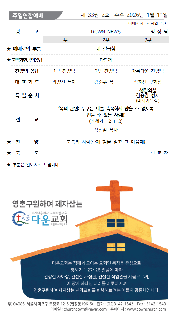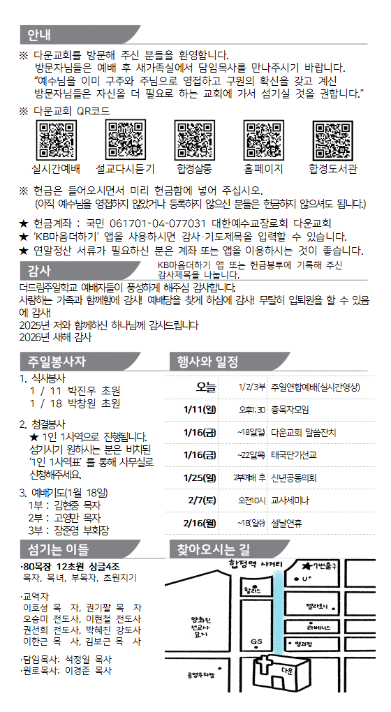 일시: 1월 11일(주일) 오후 1시 30분, 합정홀
