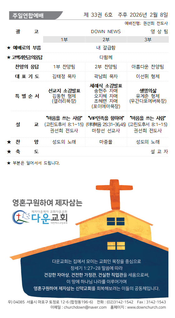 필요할 경우 특별 예수님영접모임도 가능합니다. 사무실로 연락주시기 바랍니다.