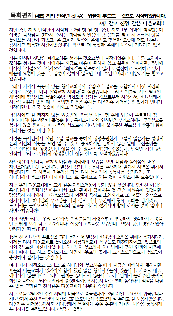 온 가족이 함께 예배를 드리며 사랑과 감사로 채워가는 풍성한 명절을 보내시길 바랍니다.