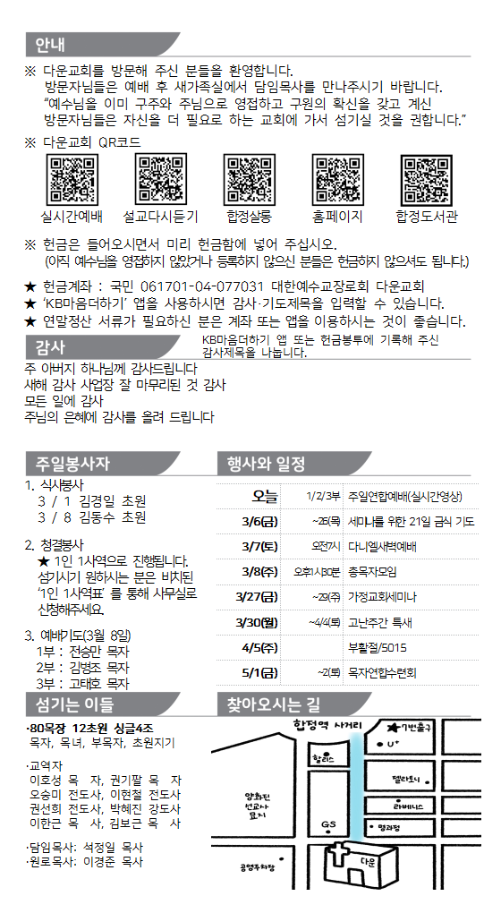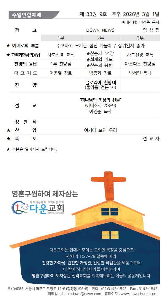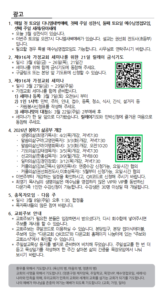2026. 3. 1. 주보와 교회소식