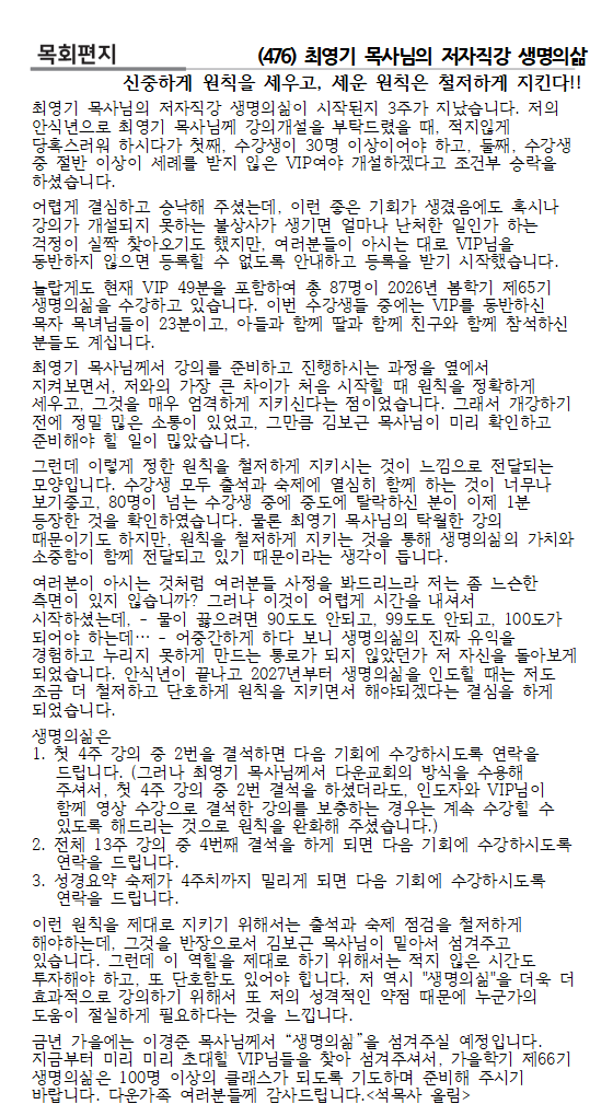 필요할 경우 특별 예수님영접모임도 가능합니다. 사무실로 연락주시기 바랍니다.