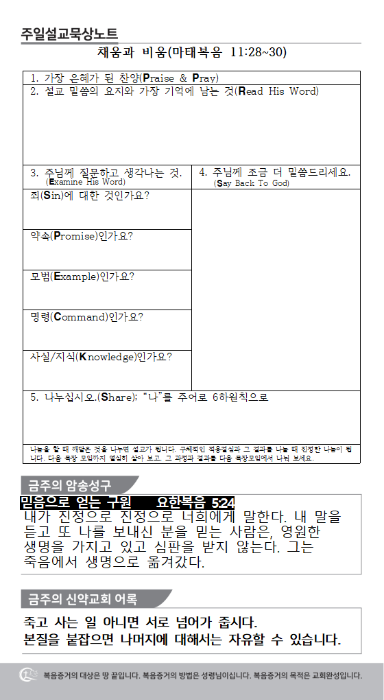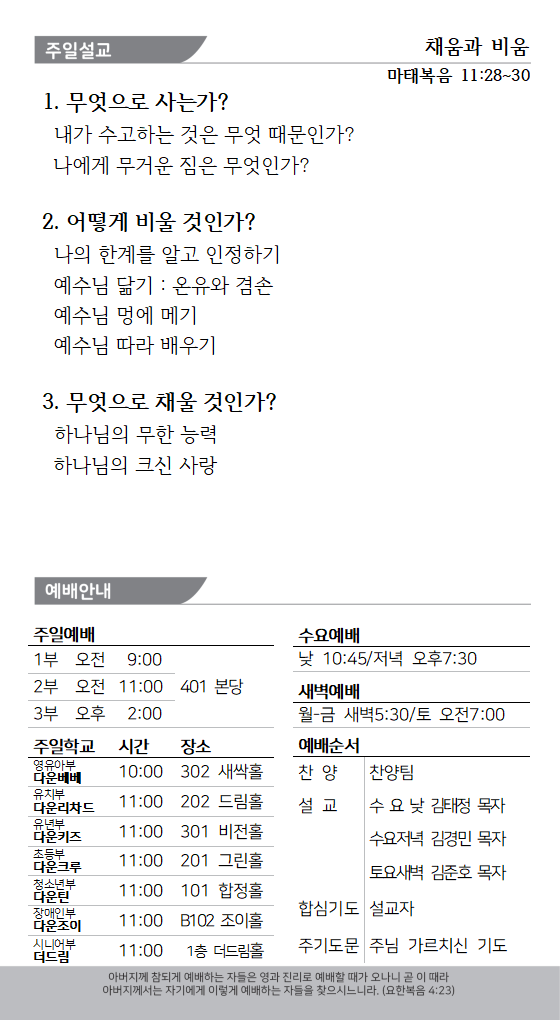 2) 매 주일마다 10분씩 통성기도를 합니다.