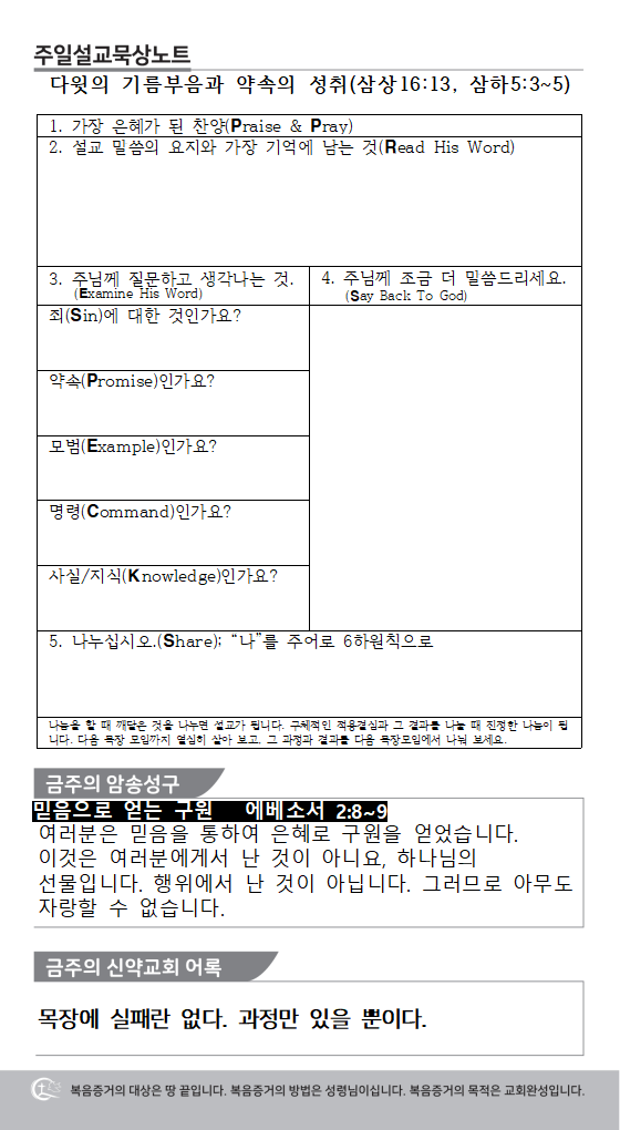 약속하신 성령님께서 나에게, 목장에, 교회에 내리시기를 위해서 함께 기도해 주세요.