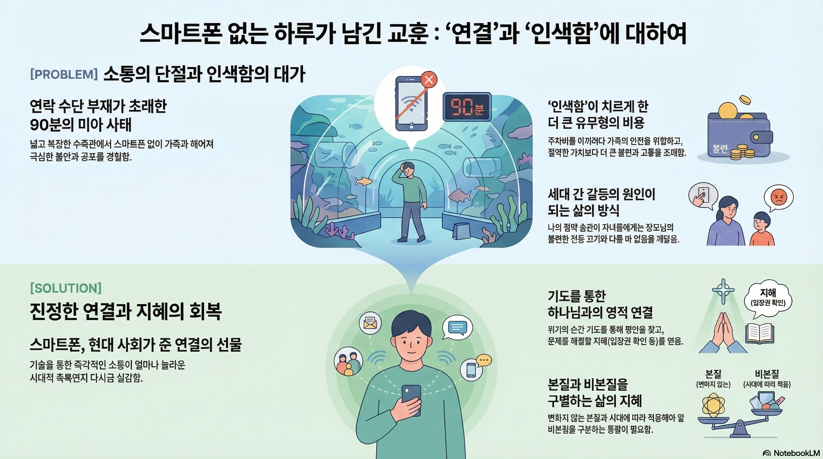 기도하고 나니, 입장권 큐알로 아내와 로희가 입장했는지 여부를 확인할 수 있겠다는 생각이 들었고, 보안요원의 도움을 받아 확인을 해보니 제가 입장하기 10분 전에 틀림없이 입장했으며, 아내도 보안팀에 저를 찾아 달라고 요청해 두고 다른 곳에서 기다리고 있었다는 것을 알게 되었습니다. 그렇게 90분 정도 만에 아내와 로희를 만나서 수족관 문을 닫을 때까지 행복한 추억을 만들 수 있었습니다.