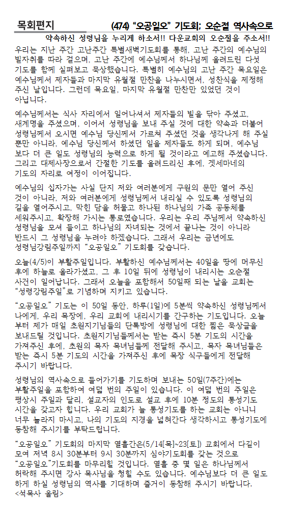 3. 성령님의 능력을 경험하는 오공일오 기도회