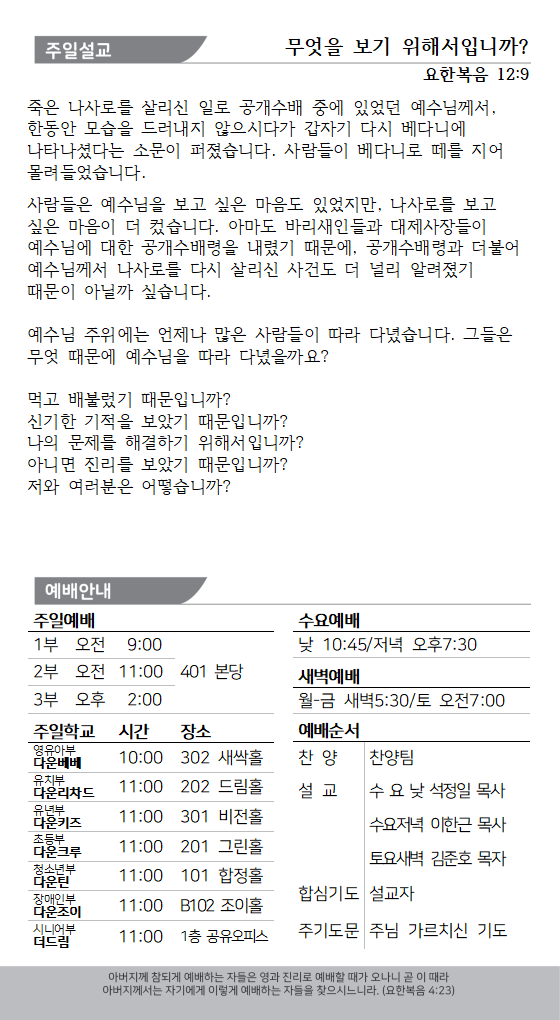 * 신청: 김보근 목사 또는 사무실로 접수