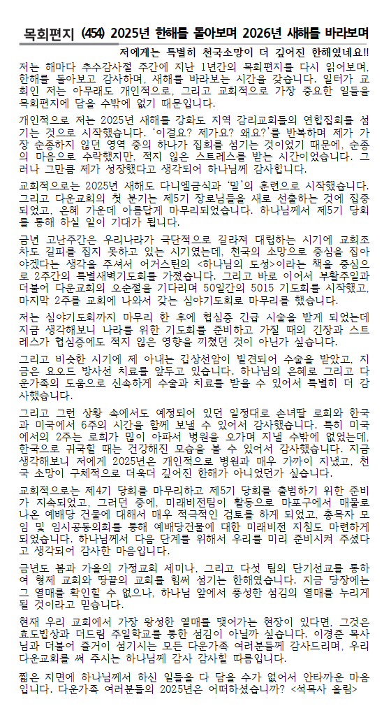 * 2025년이 지나가기 전에 결단하고 기도하신 것을 잘 마무리하여 2026년 새해를 준비하는 소중한 기회로 삼아주세요.