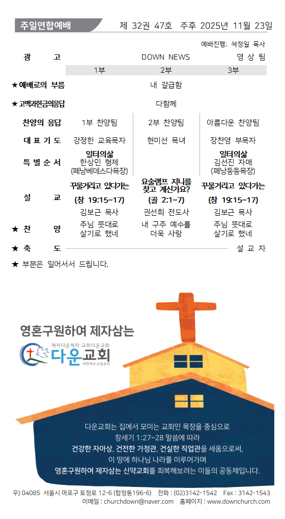* 필요할 경우 특별 예수님영접모임도 가능합니다. 사무실로 연락주시기 바랍니다.