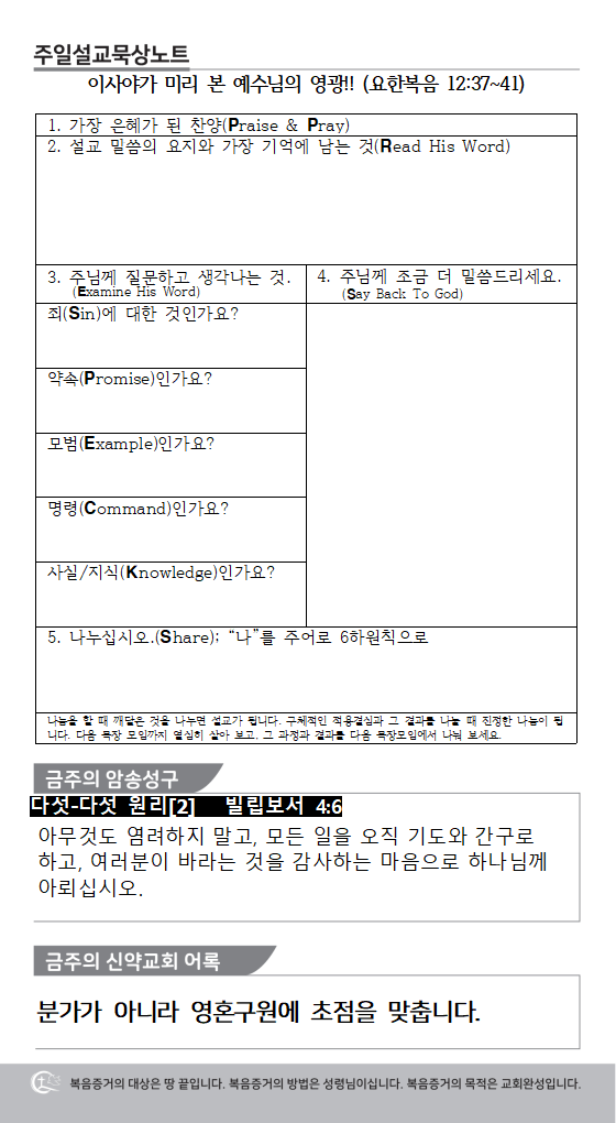 * 문의: 신앙위원회 박종화 장로(010-4217-0425)
