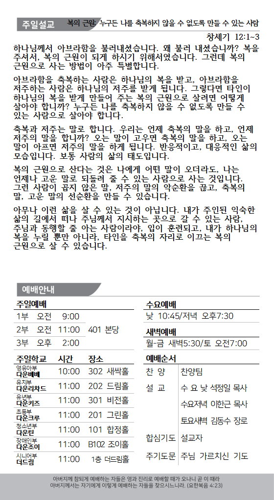 다음 주일은 세례, 유아세례가 있습니다. 원하시는 분들은 헌신석에 나오셔서 신청해 주시거나, 목자를 통해 교회사무실로 연락해 주시기 바랍니다.