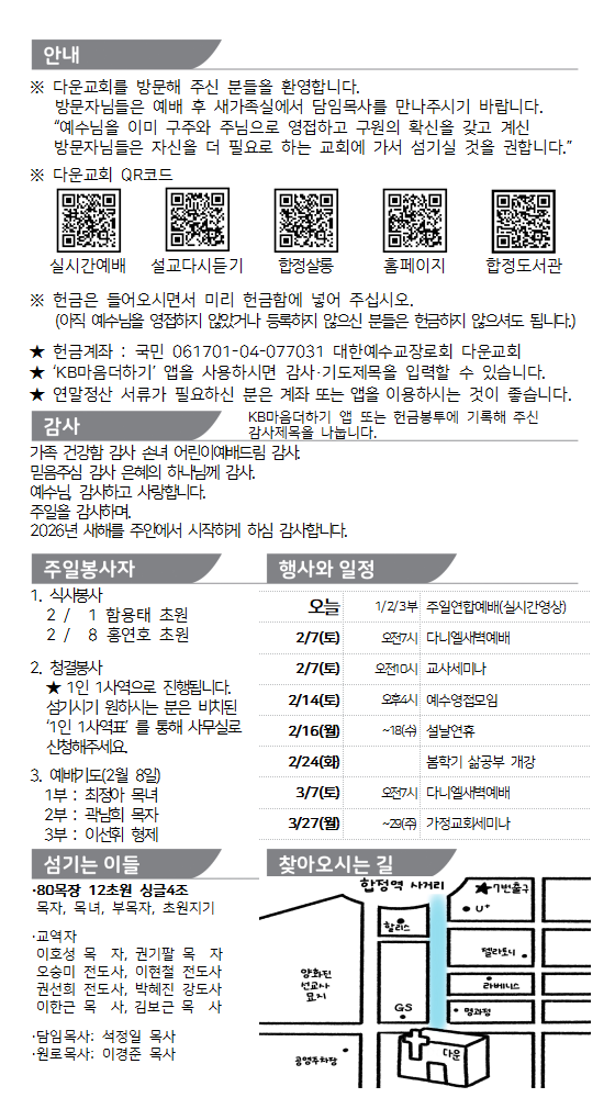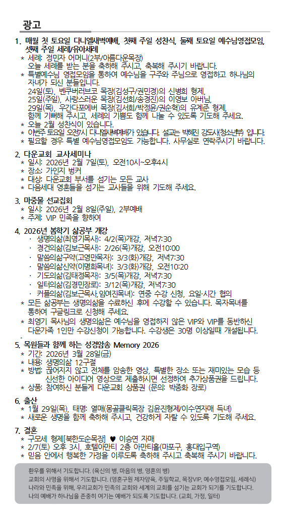 2026. 2. 1. 주보와 교회소식